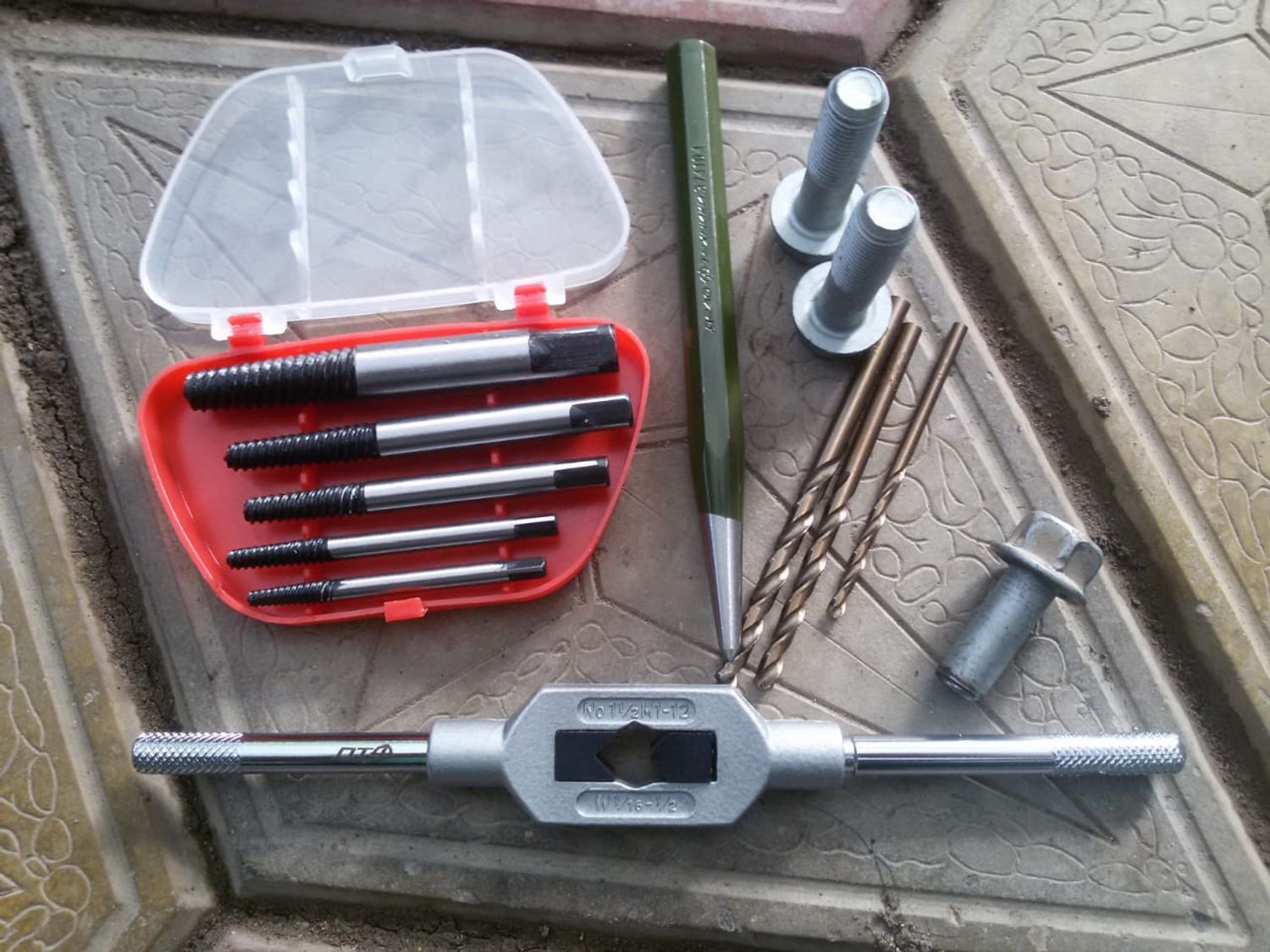 Потребуется не только экстрактор, но и набор сверл по металлу. Оно должно быть меньше, чем болт. Высверливать нужно начиная с меньшего диаметра.