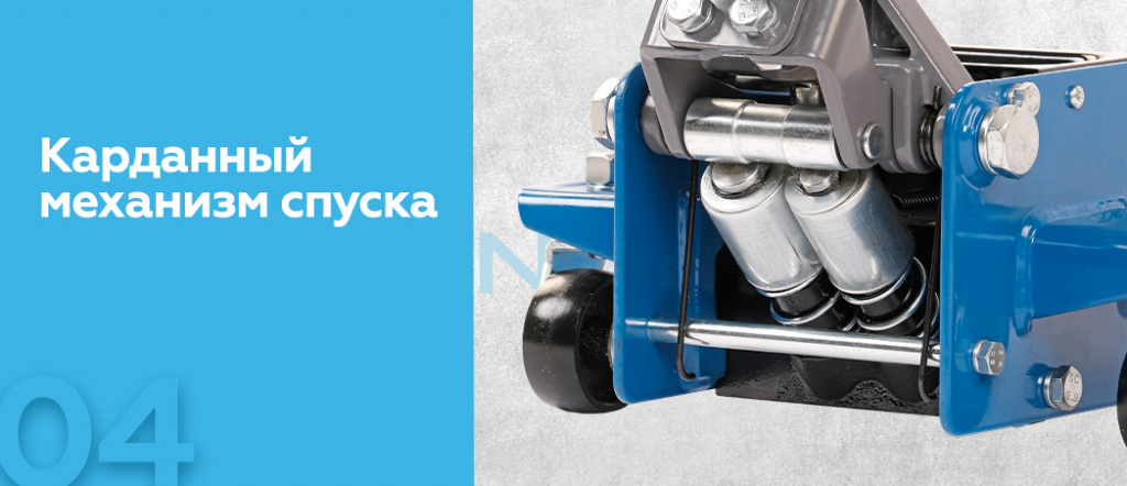 Благодаря конструкции с маневренными колесами домкрат удобно перемещать по площадке и подкатывать под автомобиль
