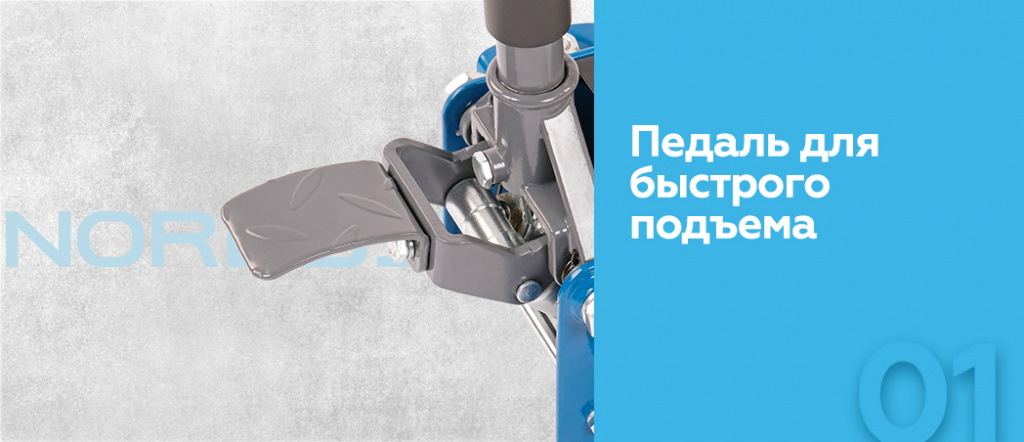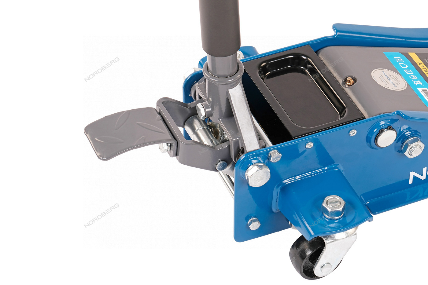 Домкрат подкатной NORDBERG N32032 с педалью для быстрого подъема значительно упростит процесс ремонта и обслуживания автомобиля.