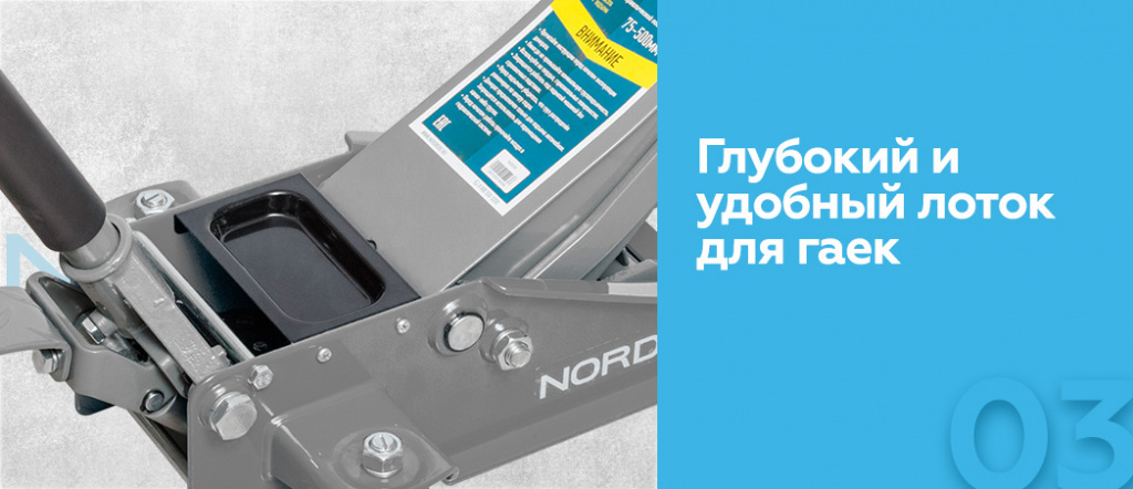Домкрат подкатной NORDBERG N32032G с педалью для быстрого подъема значительно упростит процесс ремонта и обслуживания автомобиля.