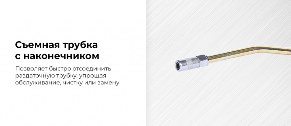 • Съемная трубка с наконечником— позволяет быстро отсоединить раздаточную трубку, упрощая обслуживание, чистку или замену;
