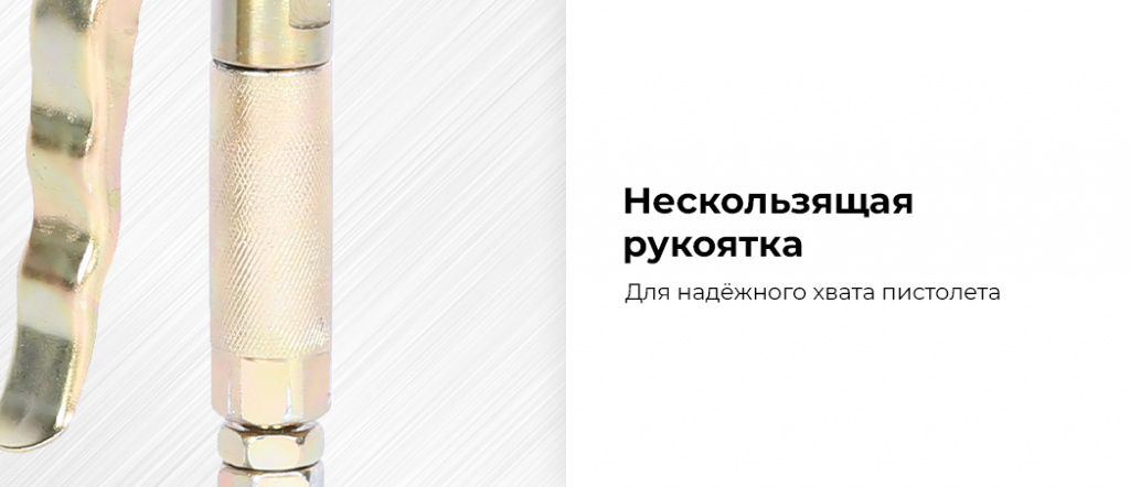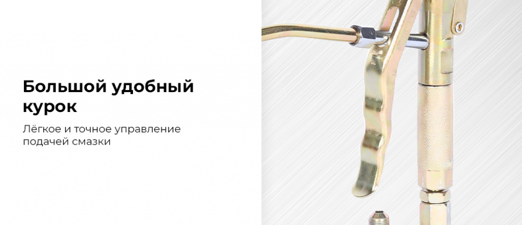 • Эргономичная рукоятка и большой удобный курок — легкое и точное управление подачей смазки;