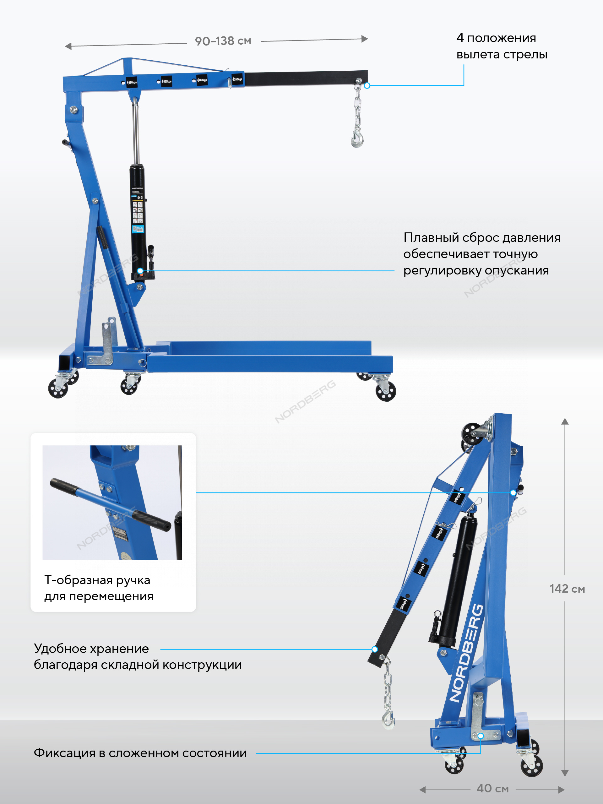 NORDBERG N3707 — это прочный и удобный кран, который станет незаменимым помощником при работе с тяжёлыми узлами и агрегатами. Отличный выбор для профессионального использования на СТО, в автомастерских, сервисных зонах и гаражах.