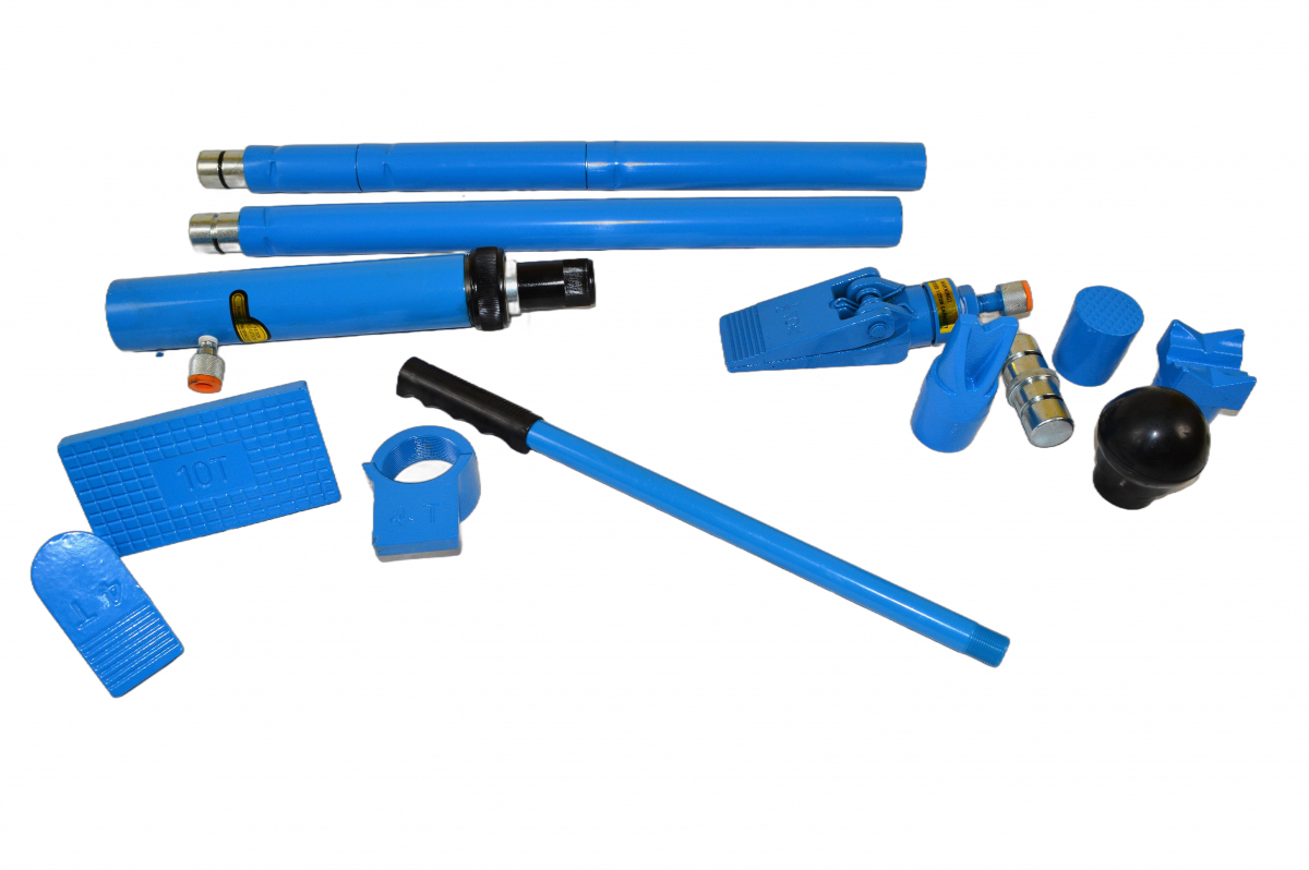 Полный комплект содержит приспособления, необходимые для подъема, толкания, вытягивания, сгибания, выпрямления и расправления металла кузова.