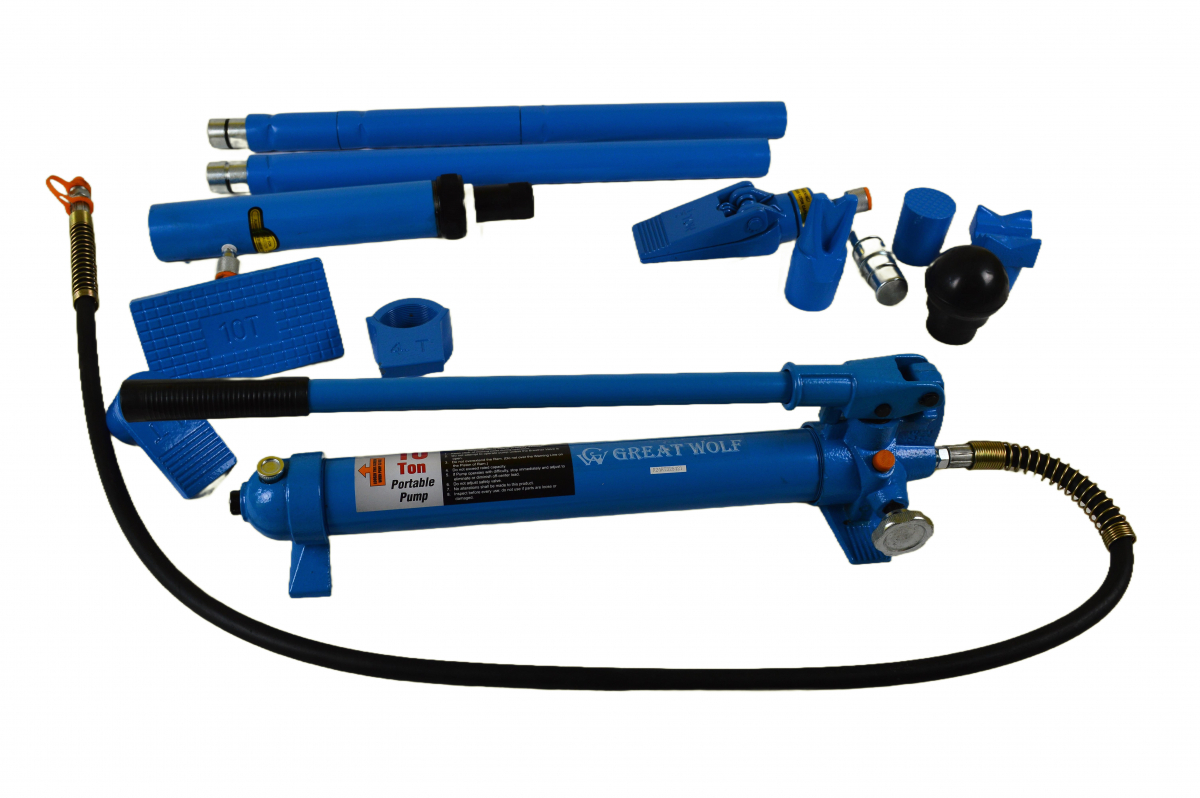 Гидравлическая растяжка Great Wolf 10 тонн GW-0410 с универсальными силовыми приспособлениями применяется для ремонта кузовных элементов легковых автомобилей, грузовиков, сельскохозяйственной и тяжелой техники.