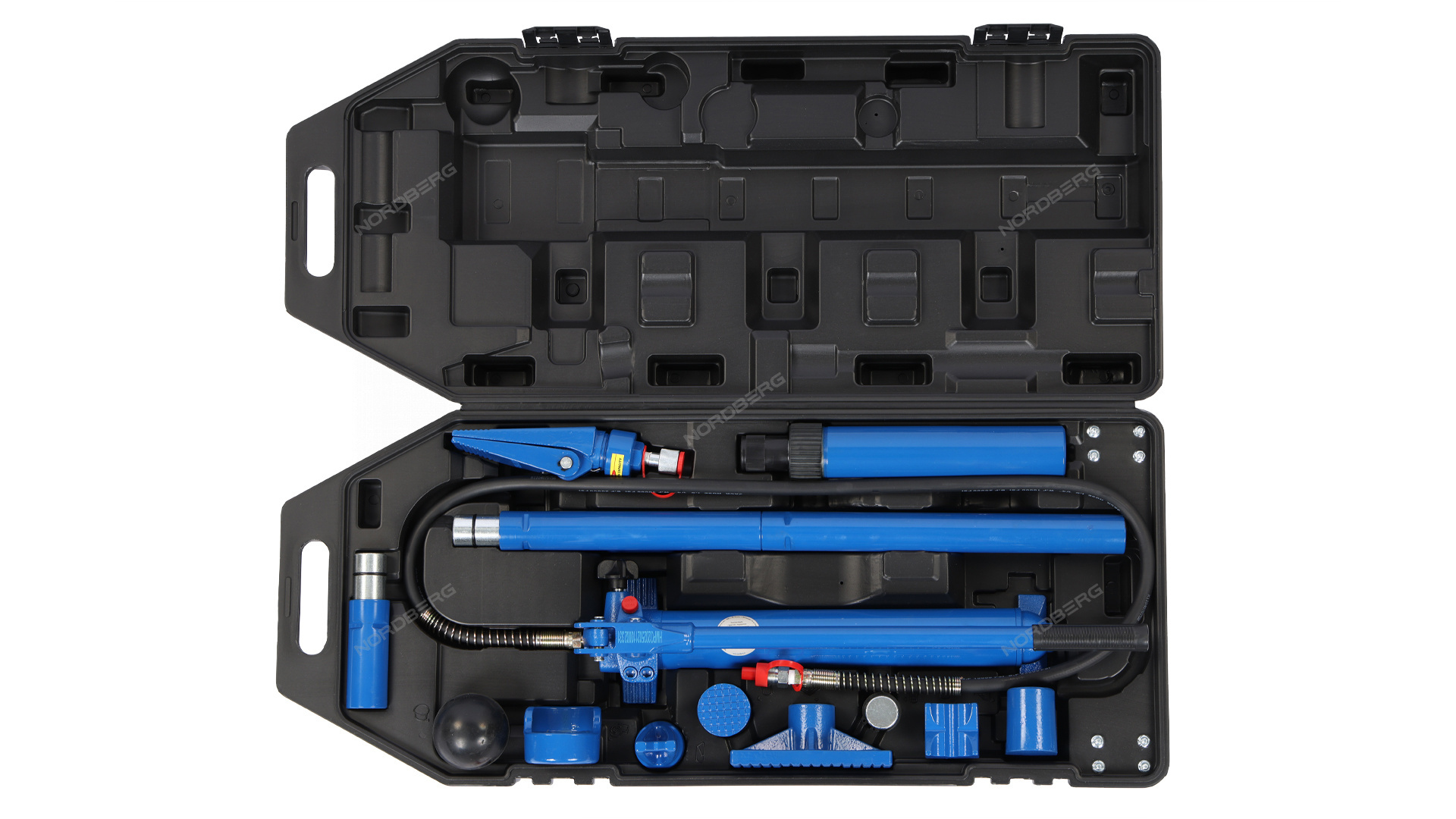 NORDBERG N3810 — профессиональный гидравлический рихтовочный комплект. Применяется для восстановления геометрии кузова при кузовных и рихтовочных работах в автосервисах и ремонтных мастерских.