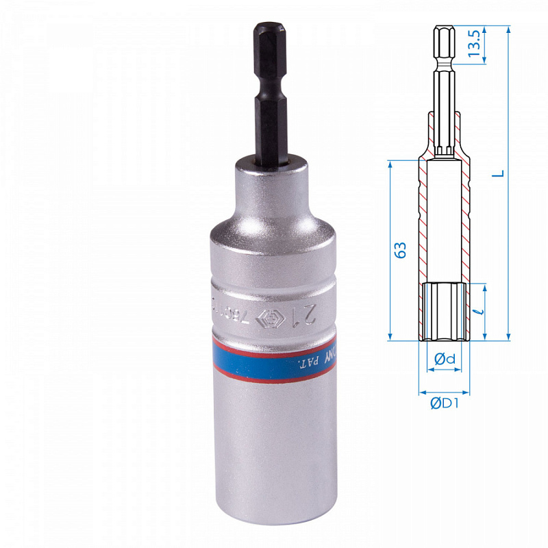 KING TONY (76B821M) Головка для шуруповерта двенадцатигранная 1/4", 21 мм, L = 80 мм
