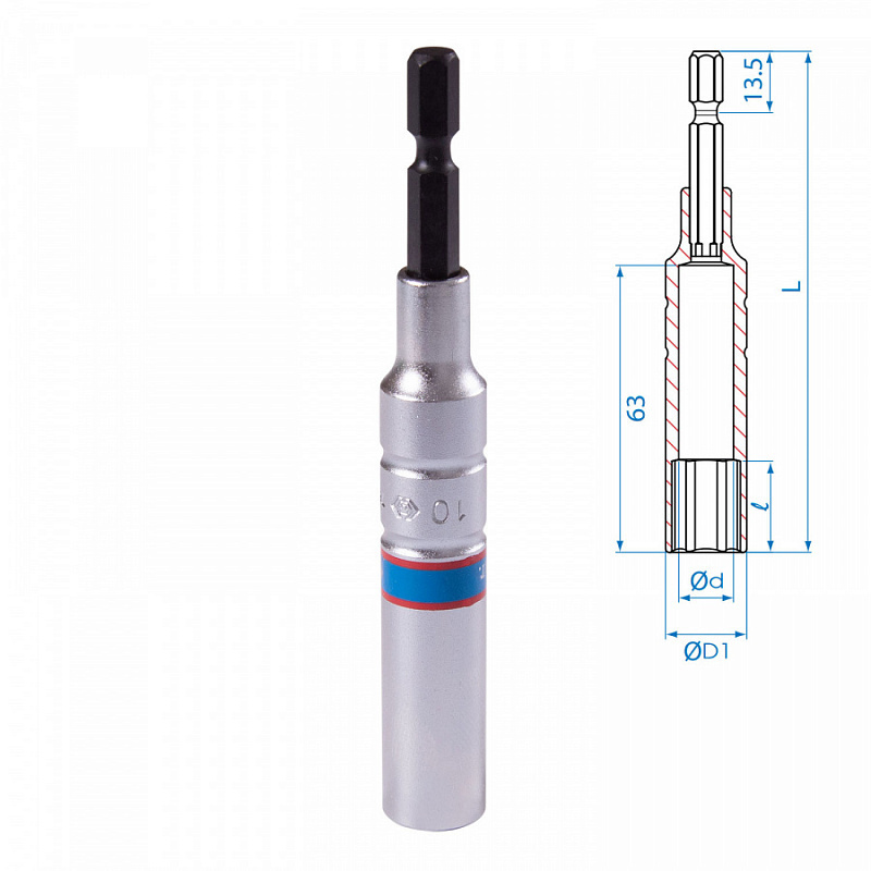 Головка для шуруповерта шестигранная 1/4", 10 мм, L = 110 мм KING TONY 76C1110M.