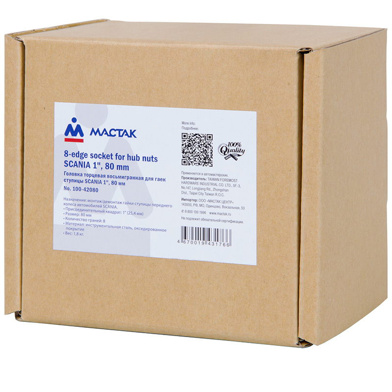 Закажите МАСТАК (100-42080) Головка торцевая восьмигранная для гаек ступицы SCANIA 1", 80 мм с доставкой по Москве, Санкт-Петербургу и всей России от официального дилера ООО «МАСТАК ЦЕНТР» - ООО «Еврогрупп». Товар в наличии в магазине. Возможен самовывоз в день заказа. Официальная гарантия на товары от производителя МАСТАК. Выберите подходящий инструмент из категории «Головки для подвески автомобиля» и сделайте заказ на сайте. Ответим на любые вопросы по телефону +7 (4852) 66-30-73 или электронной почте sales@mactak-yaroslavl.ru.