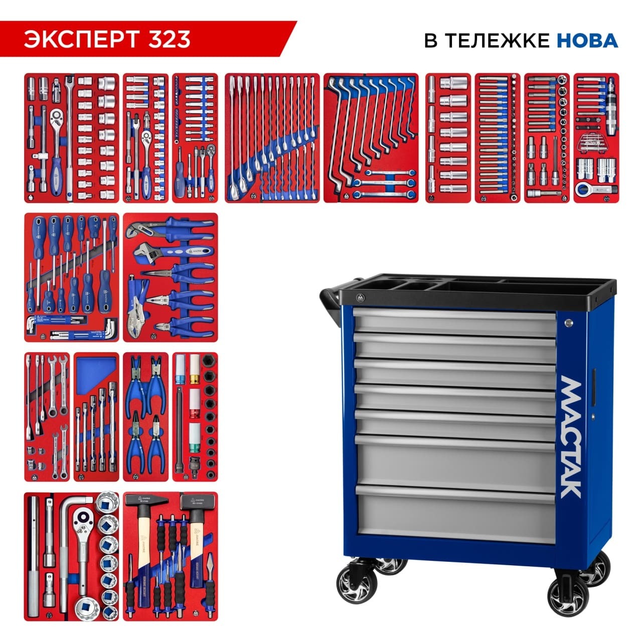 МАСТАК (52-07323B) Набор инструментов "ЭКСПЕРТ" в синей тележке, 323 предмета