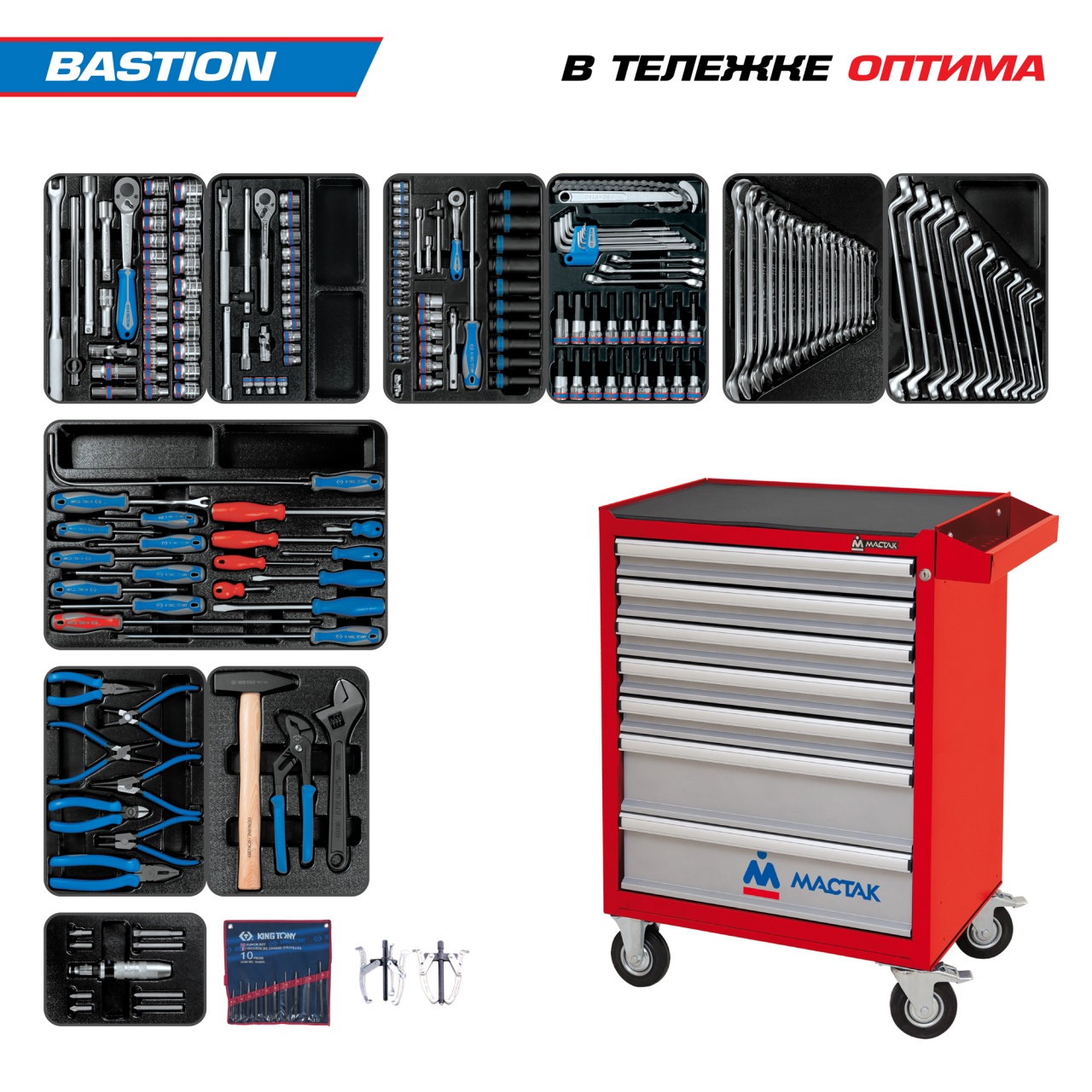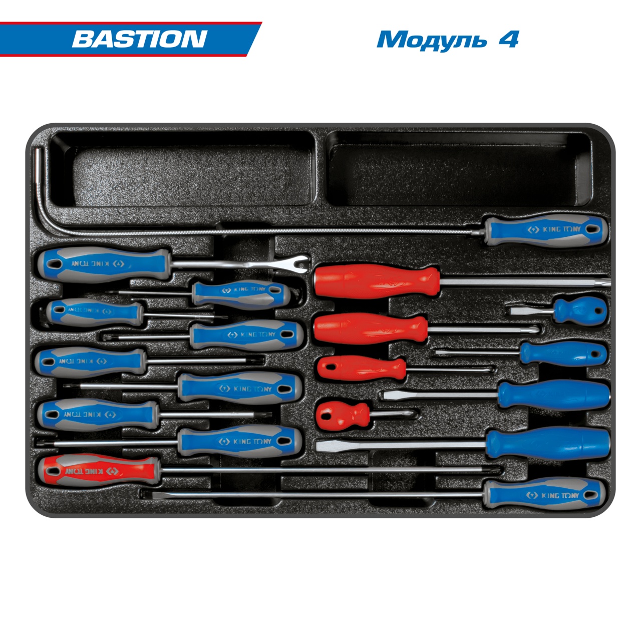 Набор инструментов 204 предмета, "BASTION", в красной тележке KING TONY 934-100AMR01.