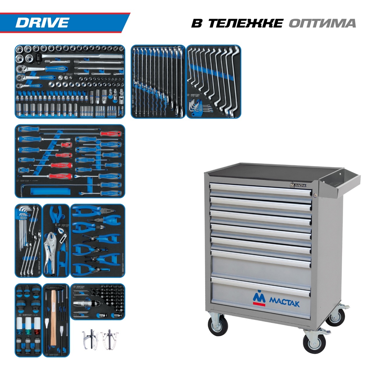Набор инструментов 251 предмет, "DRIVE", в серой тележке KING TONY 934-251AMG01.