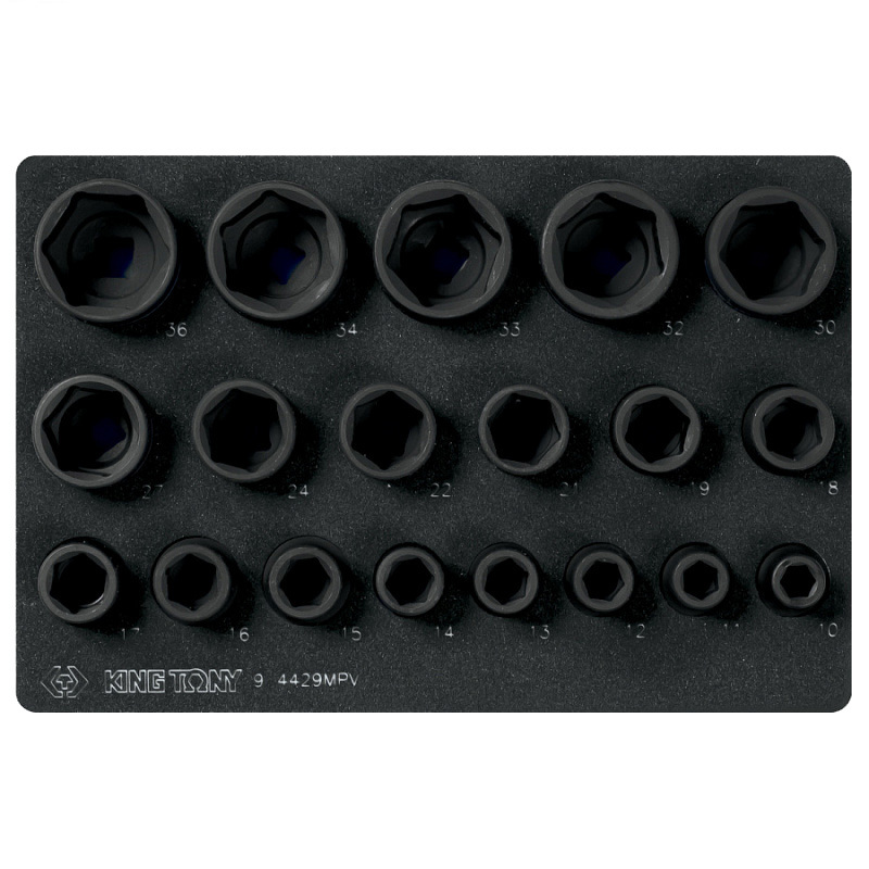 KING TONY (9-4429MPV) Набор ударных торцевых головок 1/2", шестигранные, 10-36 мм, ложемент, 19 предметов