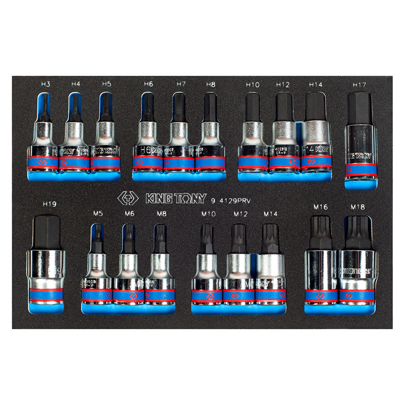 Набор торцевых насадок HEX и SPLINE, ложемент, 19 предметов KING TONY 9-4129PRV