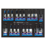 Набор торцевых насадок 1/2" предназначен для монтажа и демонтажа крепежных узлов различных изделий, устройств и агрегатов с внутренним профилем HEX и SPLINE.
