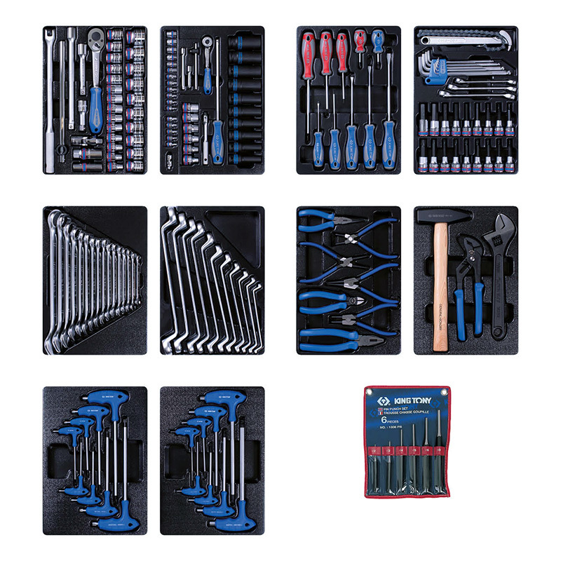 Набор инструментов для тележки, 10 ложементов, 173 предмета KING TONY 932-000MRD-MT.