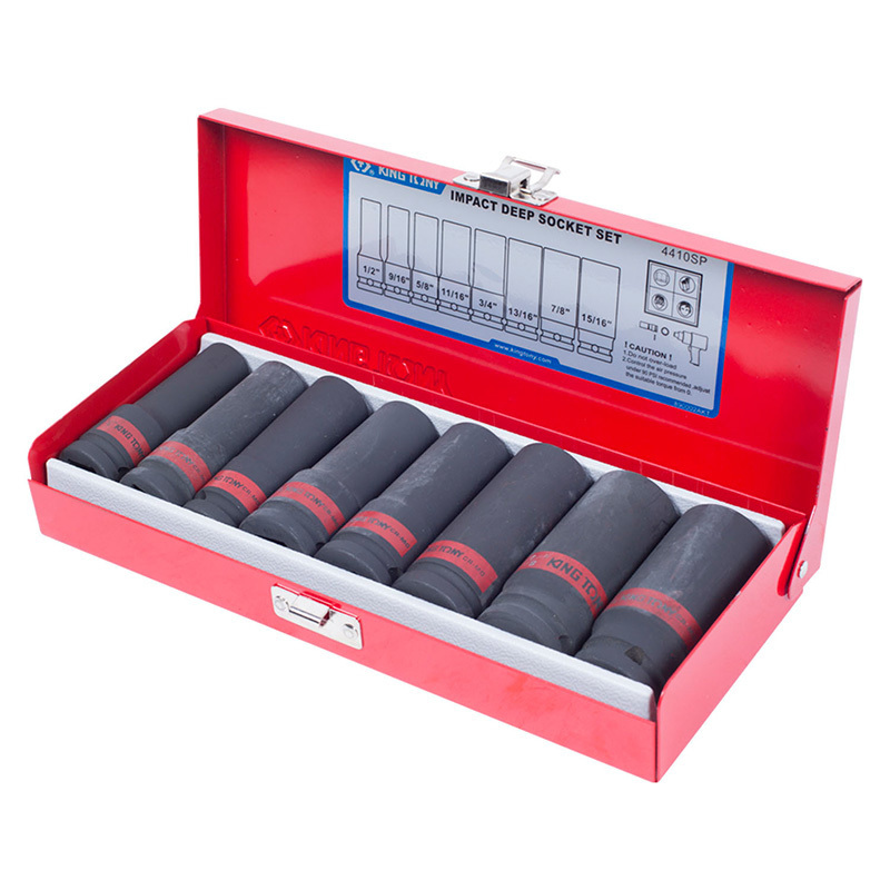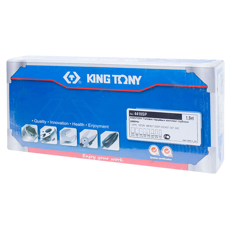 KING TONY (4410SP) Набор ударных глубоких торцевых головок 1/2", 6-гранные, 1/2"-15/16", 8 предметов