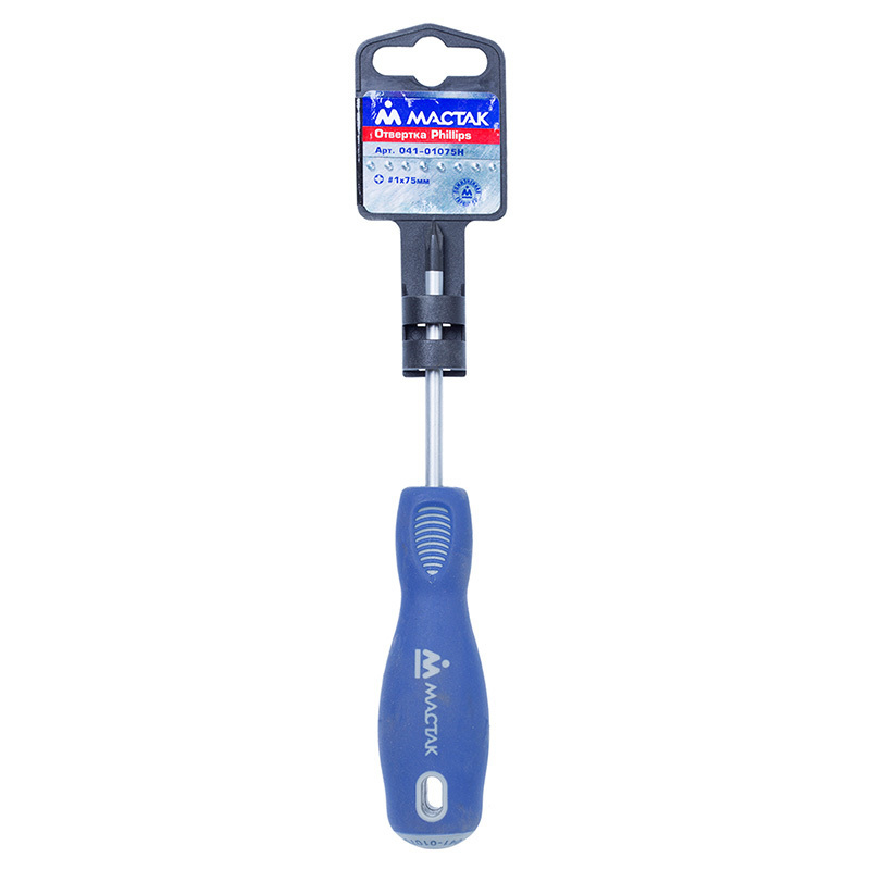Крестовая отвертка МАСТАК 041-01075H для работы с внутренним Phillips профилем крепежа и предназначена для монтажа и демонтажа крепежных узлов различных изделий, устройств и агрегатов.