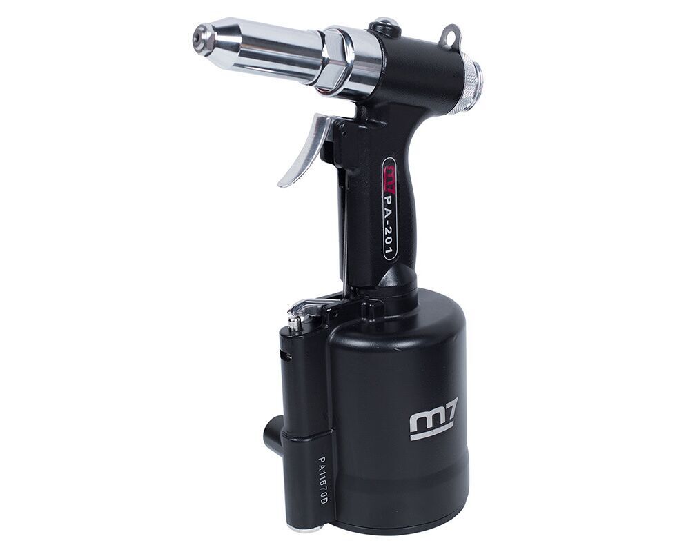Пневмогидравлический заклепочник MIGHTY SEVEN PA-201V для заклепок диаметром 2,4 до 6,4 мм, пневмоудержание заклепки.