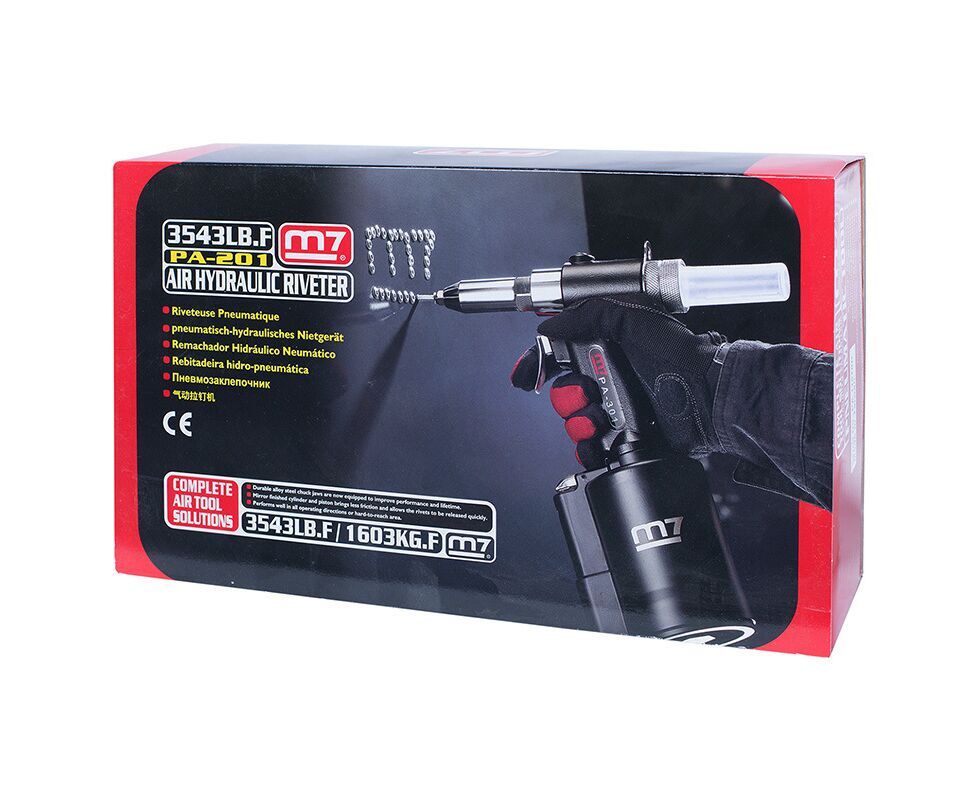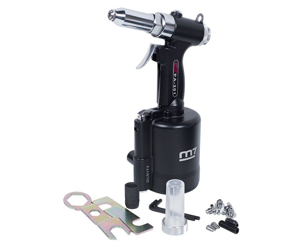 Пневмогидравлический заклепочник MIGHTY SEVEN (PA-201V) для заклепок диаметром 2,4 до 6,4 мм, пневмоудержание заклепки