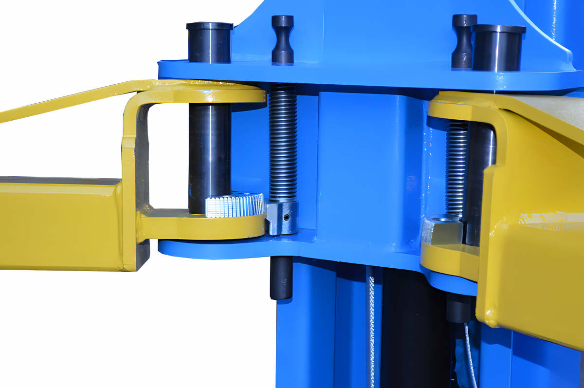 Важным элементом конструкции GW-C4500 380 являются стопоры с цельнометаллическими планками. Такая конструкция значительно повышает прочность подъемника и позволяет уверенно фиксировать автомобили в нужном положении. Это устраняет риск случайного соскальзывания и, тем самым, обеспечивает безопасность работы механиков.