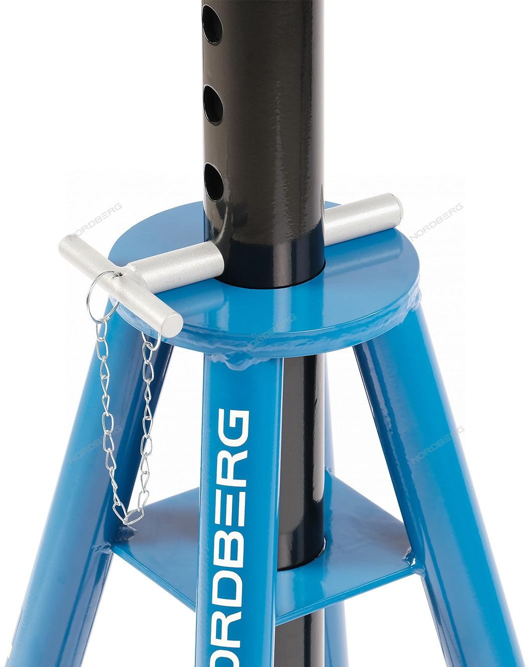 Подставка под машину регулируемая, комплект 2 шт. NORDBERG. Для фиксации и страховки при поднятии автомобиля, для выполнения ремонтных работ. Высота подхвата регулируется. Фиксация производится с помощью пальца, который вставляется в отверстие и не дает штанге двигаться. Страховку от случайного выпадения с помощью цепочки.
