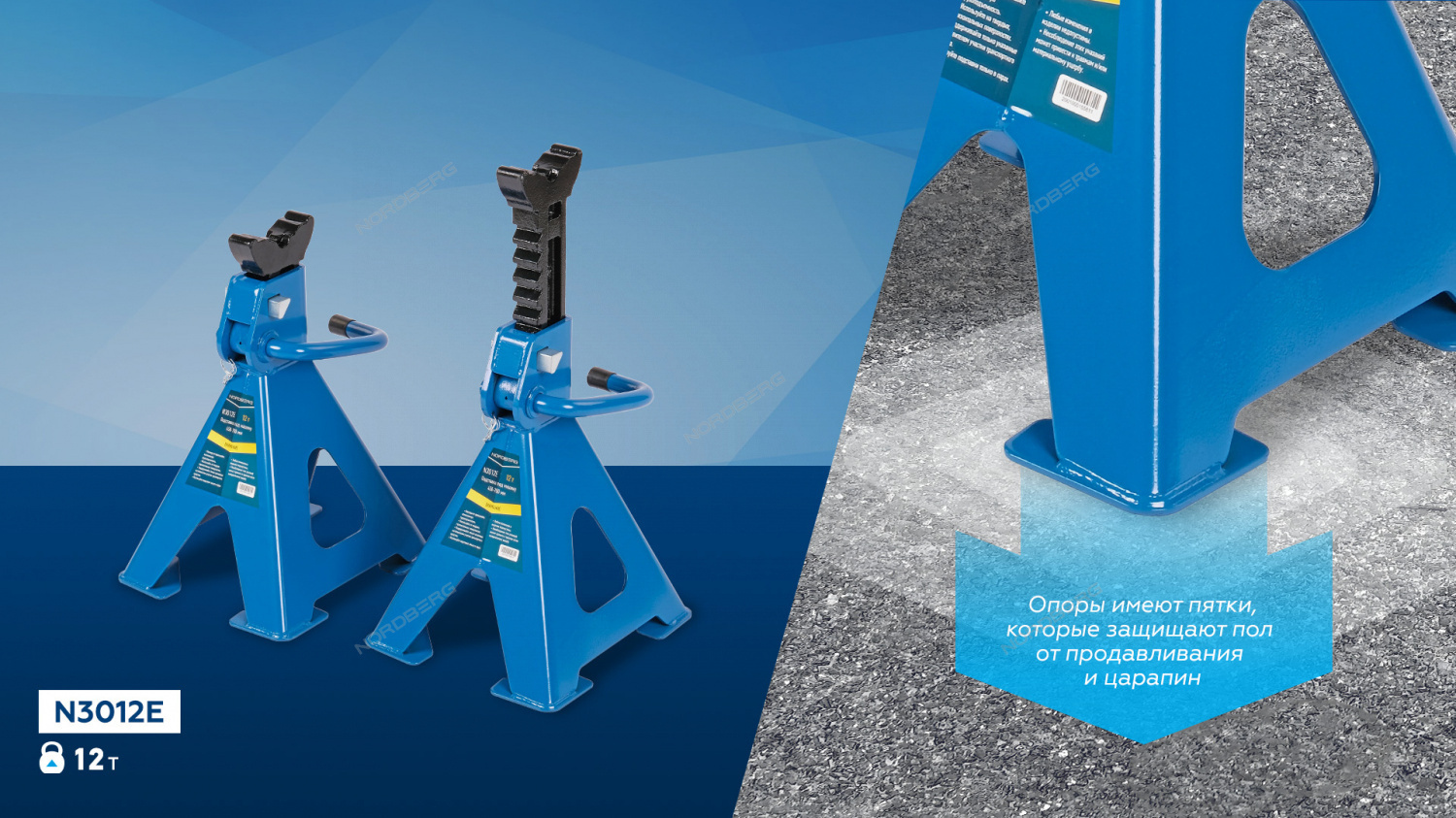 Подставка под машину регулируемая NORDBERG N3012E. Для фиксации и страховки при поднятии автомобиля, для выполнения ремонтных работ. Высота подхвата регулируется.