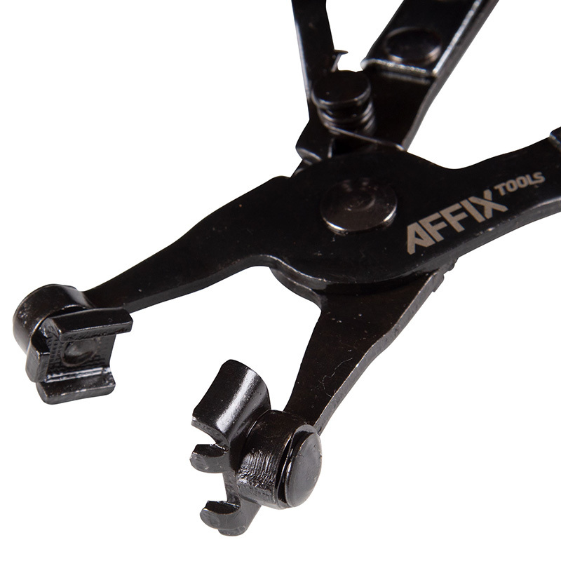 Щипцы AFFIX AF10330005 предназначены для демонтажа топливных, масляных шлангов, шлангов с охлаждающей жидкостью, фиксированных с помощью многоразовых пружинных хомутов.