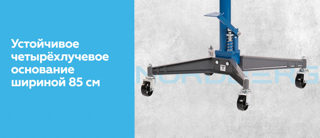 • Ширина устойчивого четырехлучевого основания 85 см способствует оптимальному доступу специалиста для закрепления агрегата на платформе.