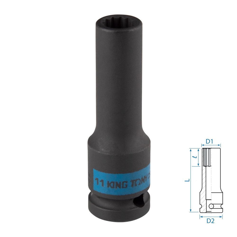 KING TONY (443012M) Головка торцевая ударная глубокая двенадцатигранная 1/2", 12 мм