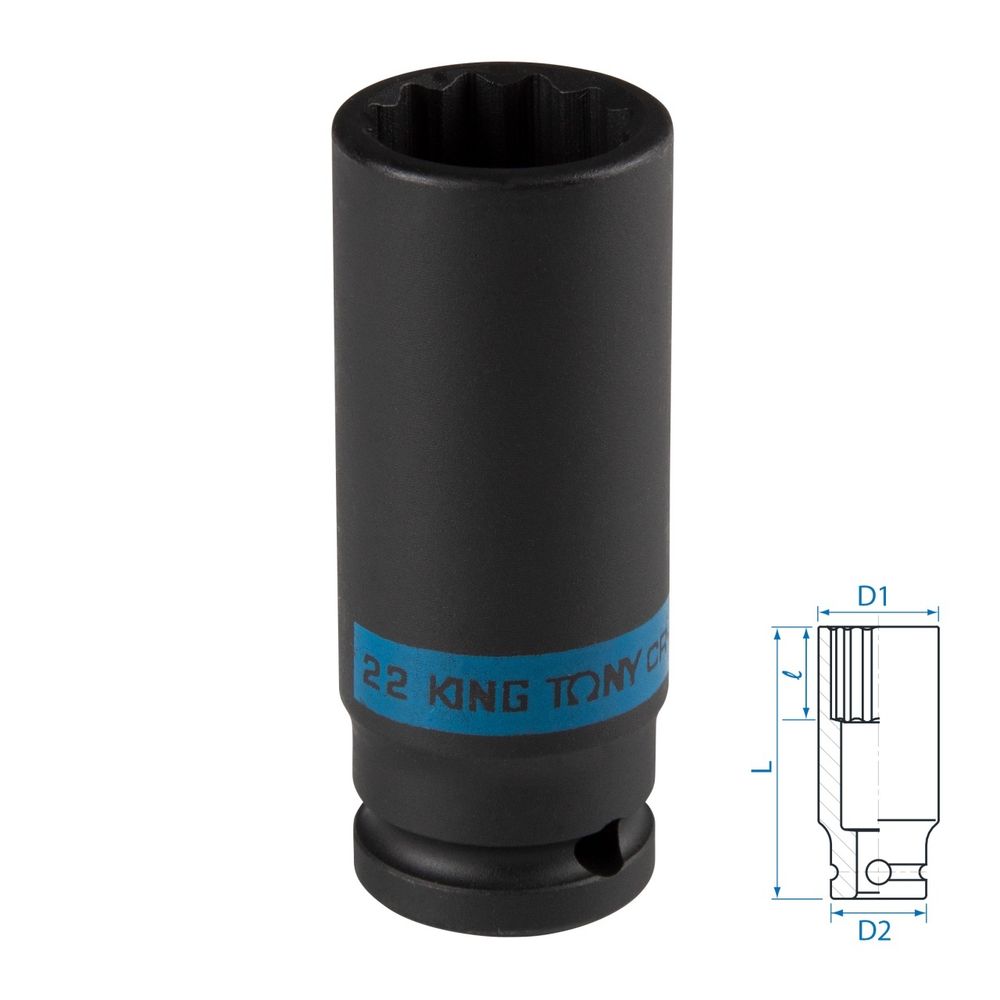 KING TONY (443022M) Головка торцевая ударная глубокая двенадцатигранная 1/2", 22 мм