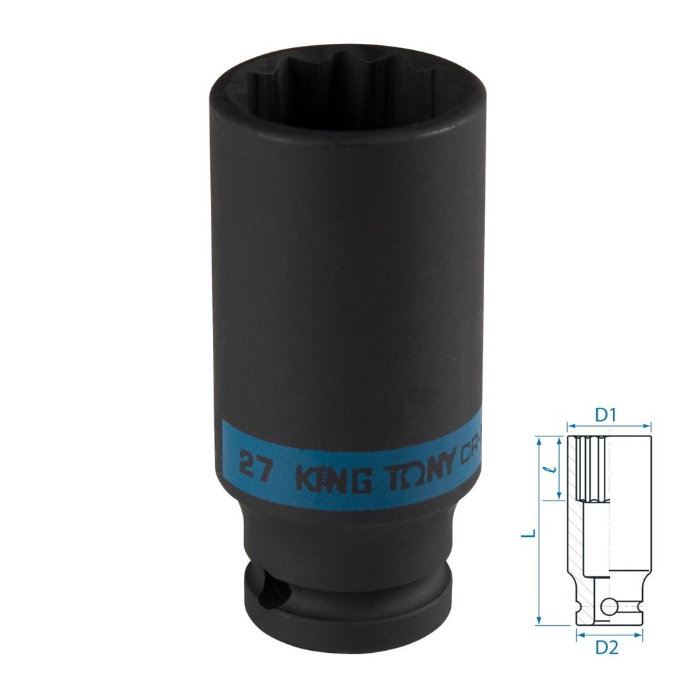 Головка торцевая ударная глубокая двенадцатигранная 1/2", 27 мм KING TONY 443027M.