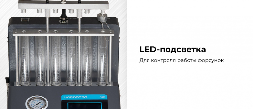 • LED-подсветка мерных колб улучшает визуальный контроль качества факела распыла форсунок;