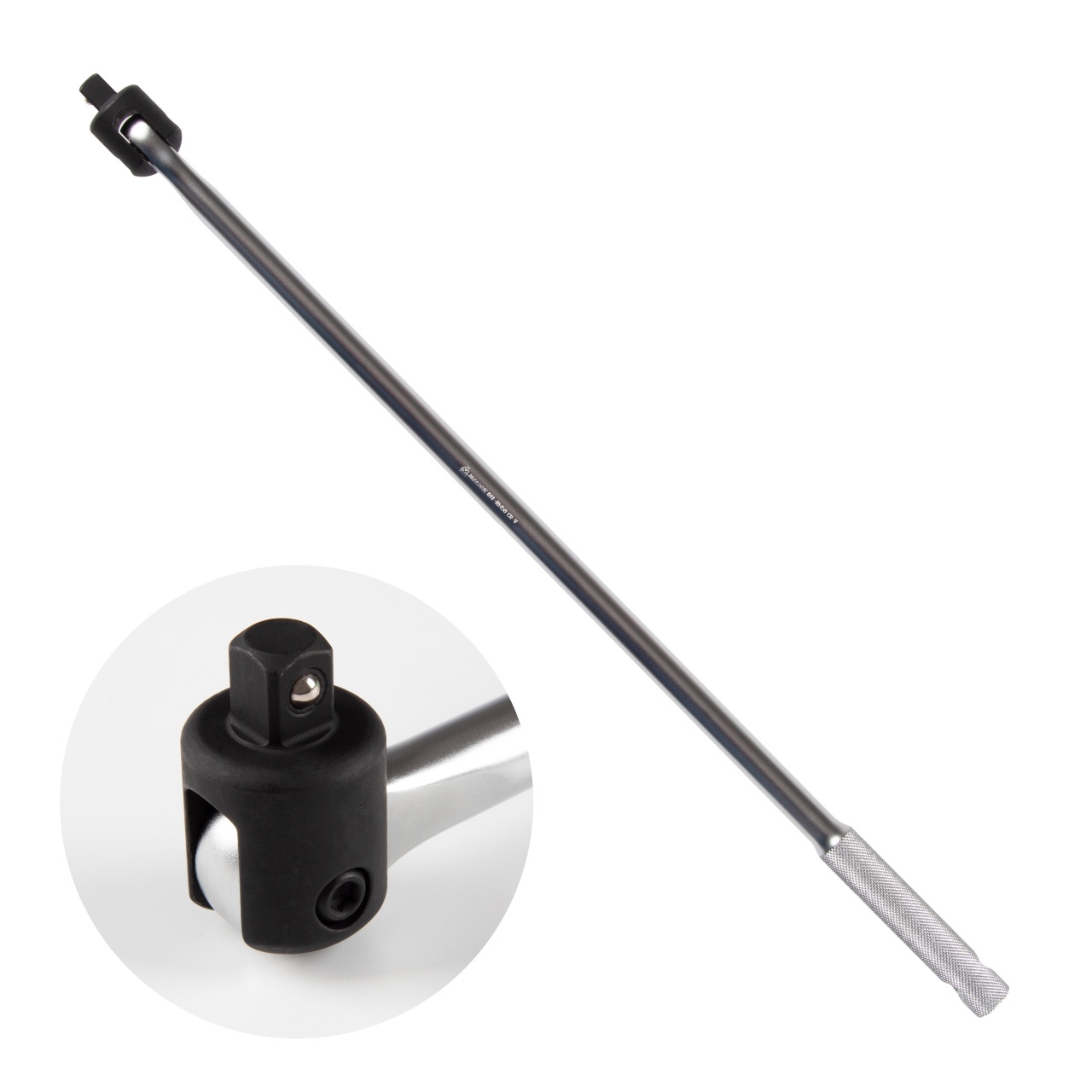 Шарнирный механизм, позволяющий вращать головку на 180 градусов, открывает возможности для работы в труднодоступных местах, где прямой доступ затруднён или невозможен. Вороток изготовлен из инструментальной легированной стали, корпус имеет хромированное матовое покрытие, оснащён рукоятью с двойной Х-типа противоскользящей насечкой и отверстием для подвеса в рабочей зоне на стенде или верстаке.