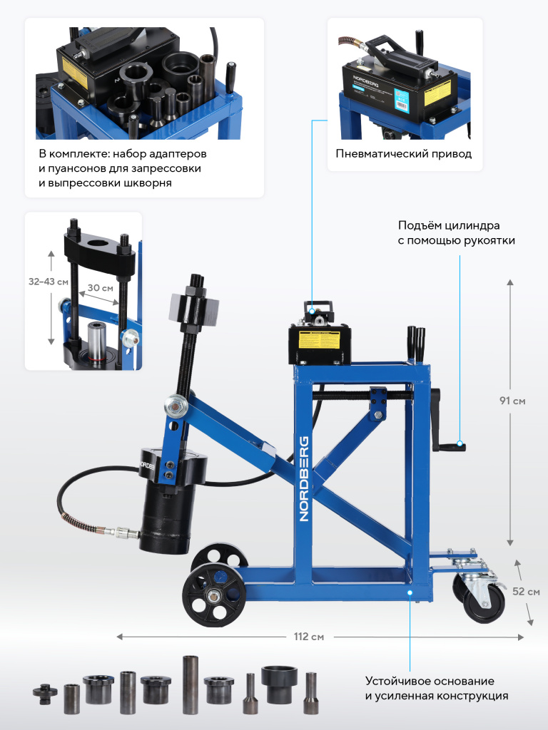Закажите NORDBERG (N31PE76A) Выпрессовщик шкворней с тележкой, гидравлический с пневмопривод, 75 т с доставкой по Москве, Санкт-Петербургу и всей России от официального дилера ООО «МАСТАК ЦЕНТР» - ООО «Еврогрупп». Товара нет в наличии. Но вы можете сделать предзаказ. Официальная гарантия на товары от производителя NORDBERG. Выберите подходящий инструмент из категории «Выпрессовщик шкворней» и сделайте заказ на сайте. Ответим на любые вопросы по телефону +7 (4852) 66-30-73 или электронной почте sales@mactak-yaroslavl.ru.